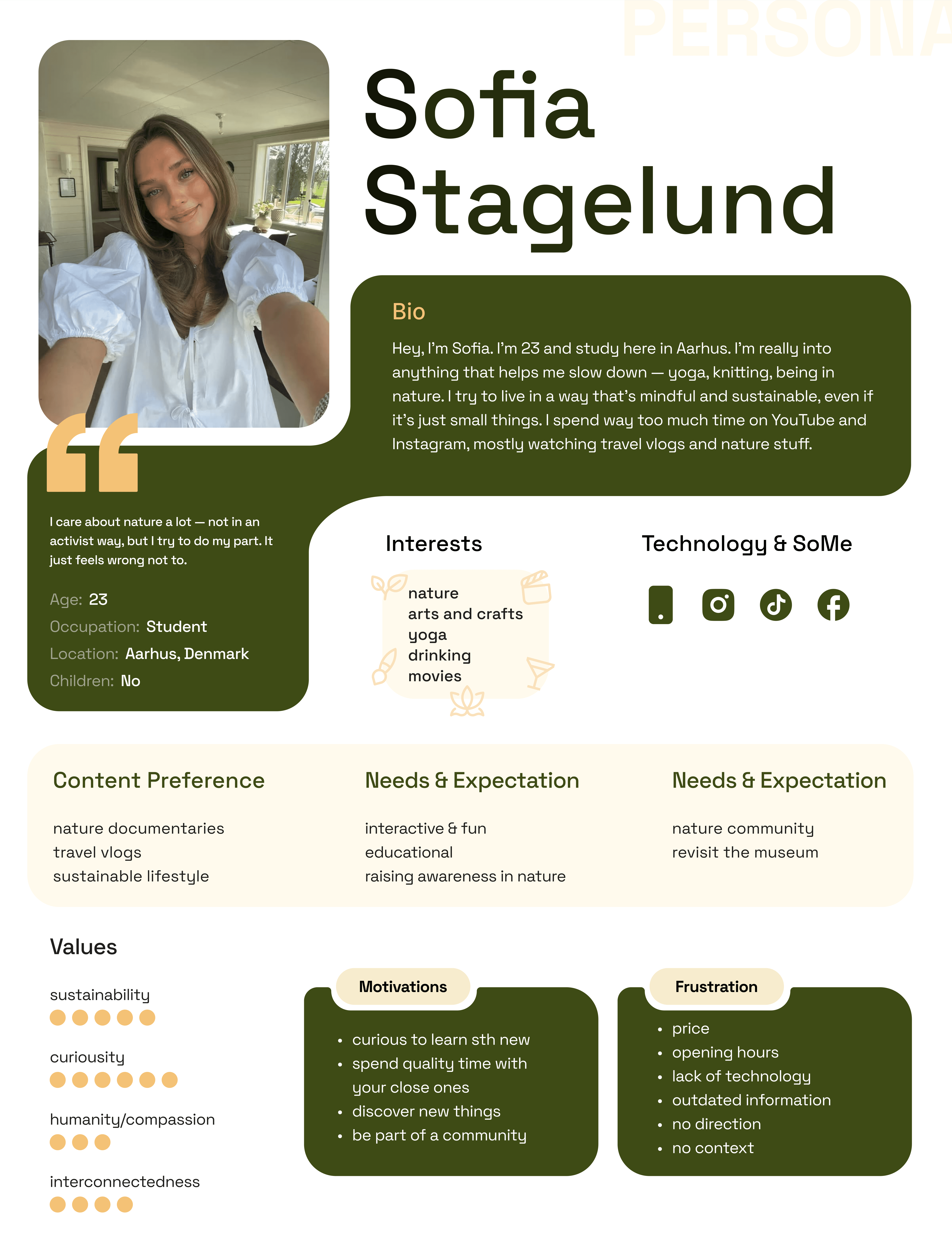 Created “Sofia,” 23, student in Aarhus—motivated by curiosity & social learning, but frustrated with outdated exhibitions